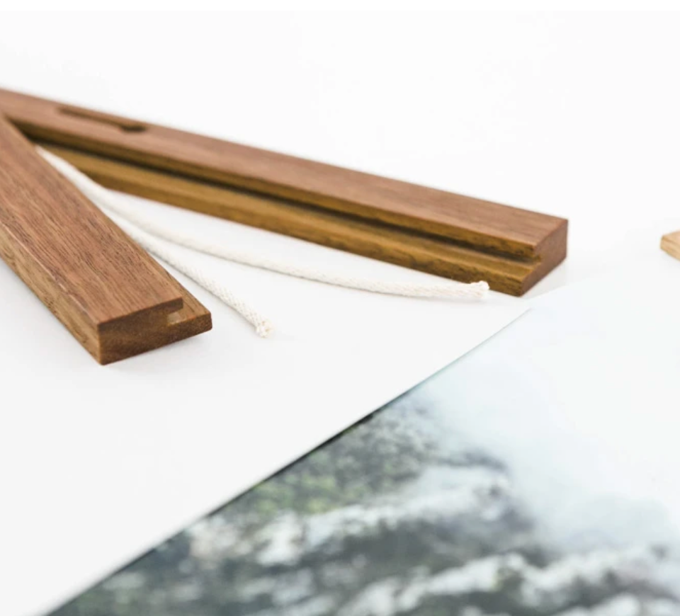 Your A5 artwork is gently clamped in each timber bar using a soft cotton cord. This securely holds your artwork, without damaging it.