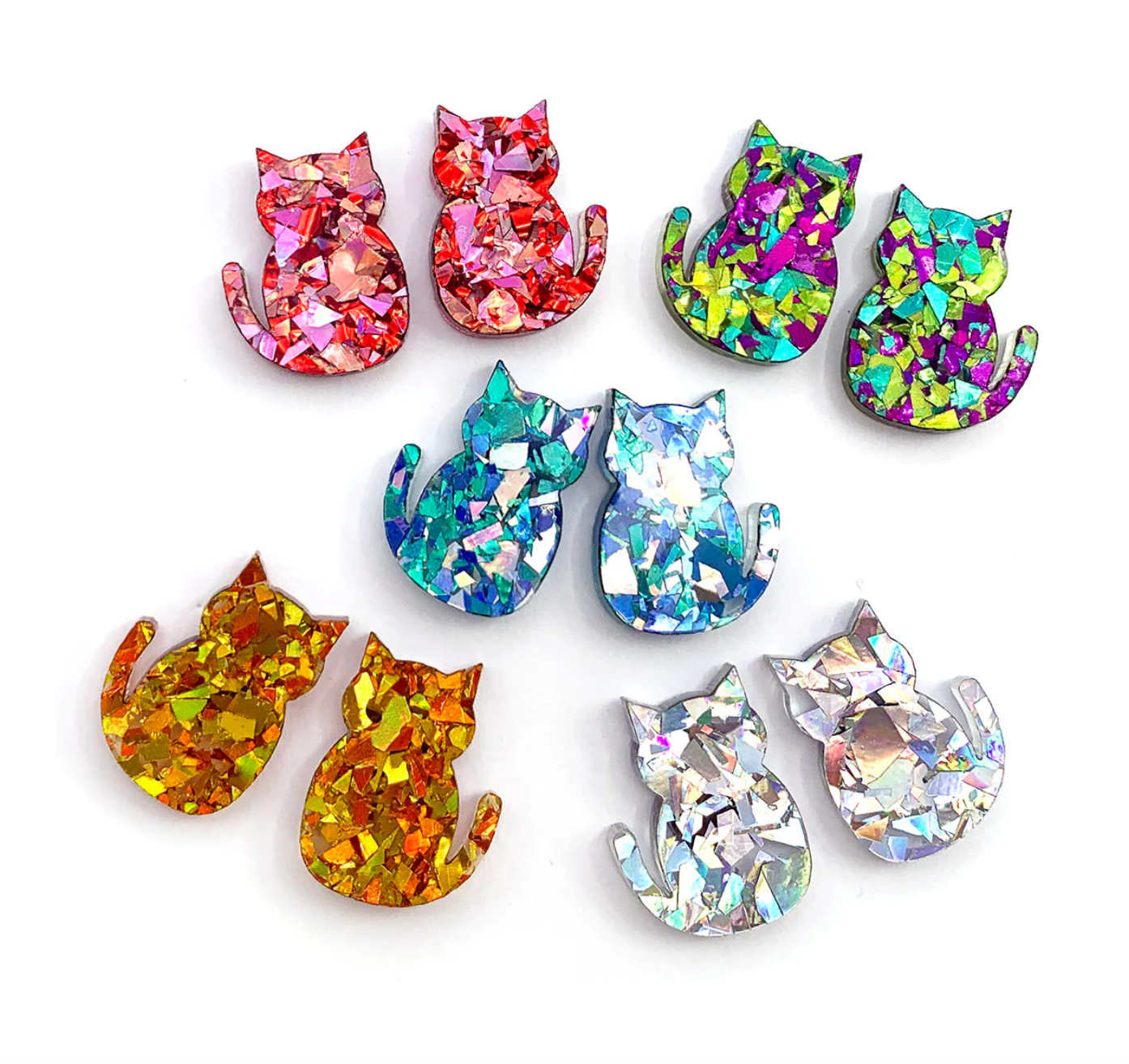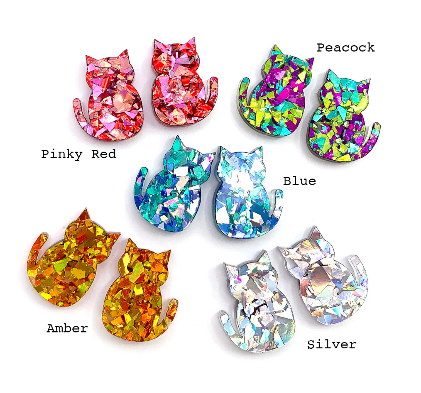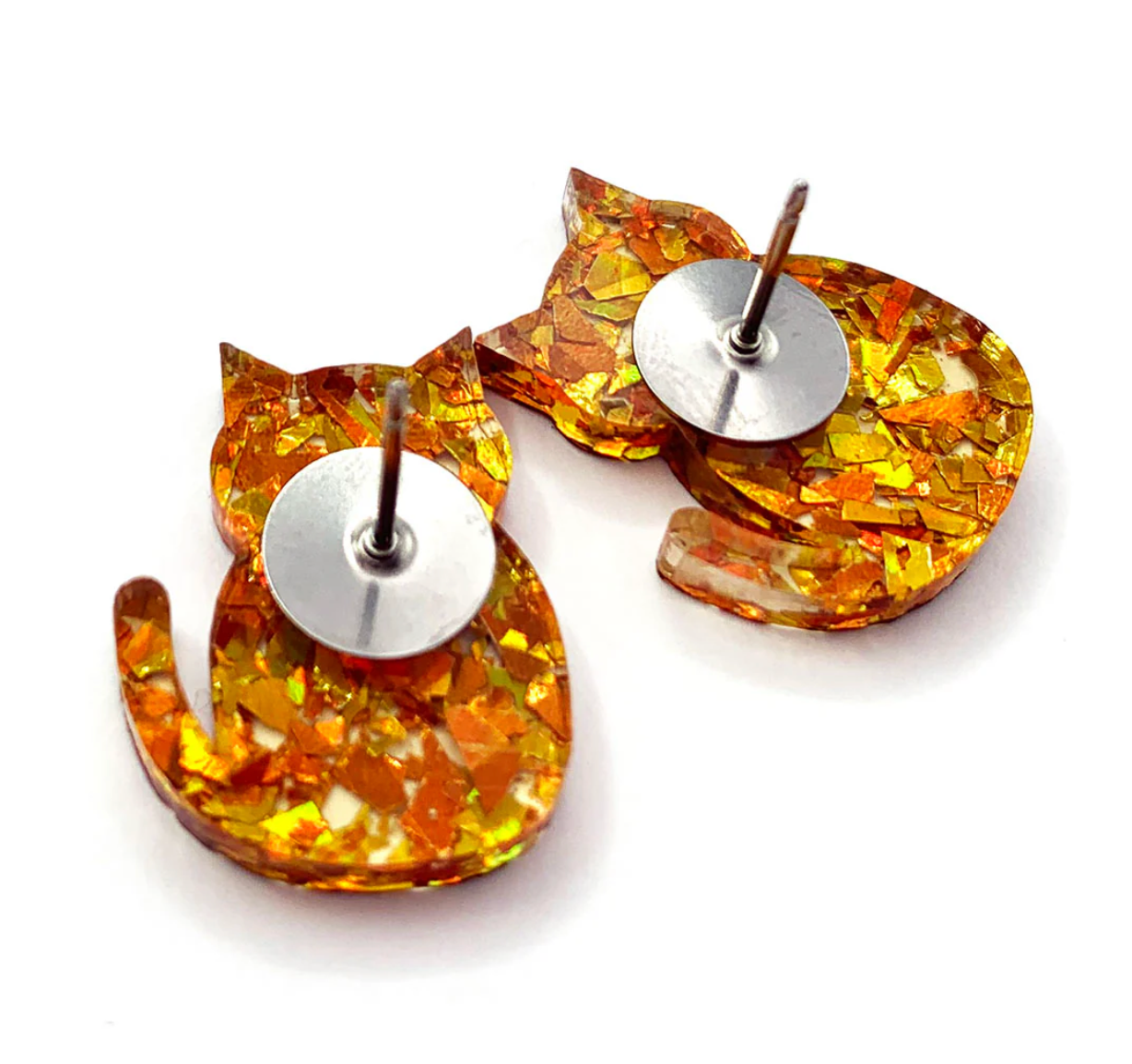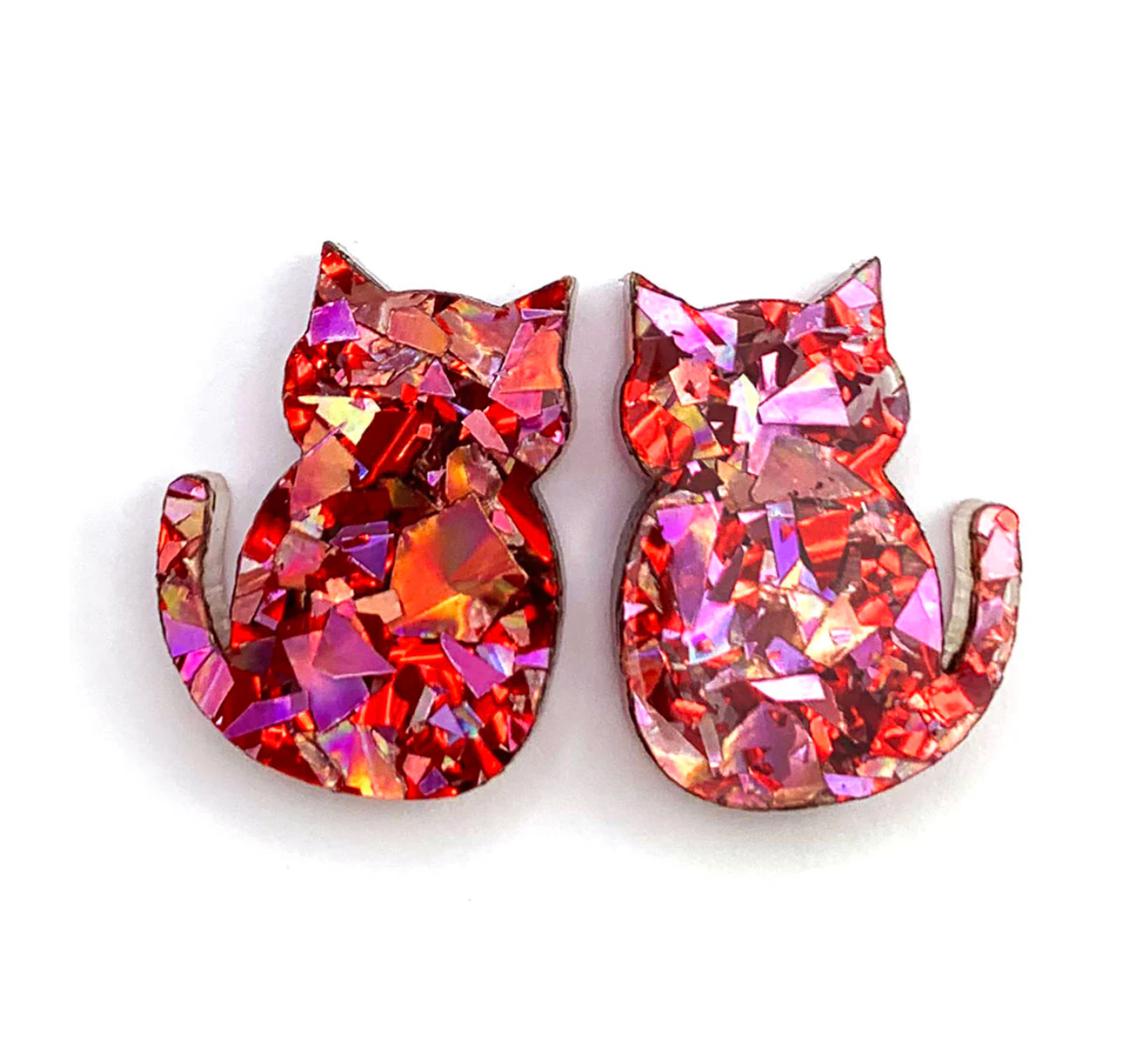These cute little Cat Earrings have been laser cut from premium glitter acrylic and assembled by hand by my dear friend Helen. They have a lovely smooth finish. Lightweight and fun to wear.