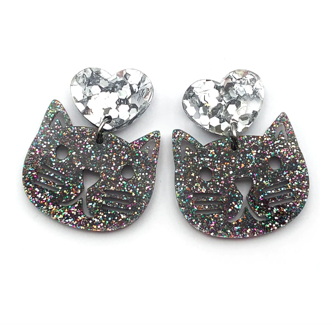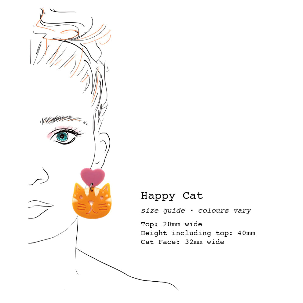 Blossom and Cat - Happy Heart Cat · Rainbow with Chunky Silver statement earrings