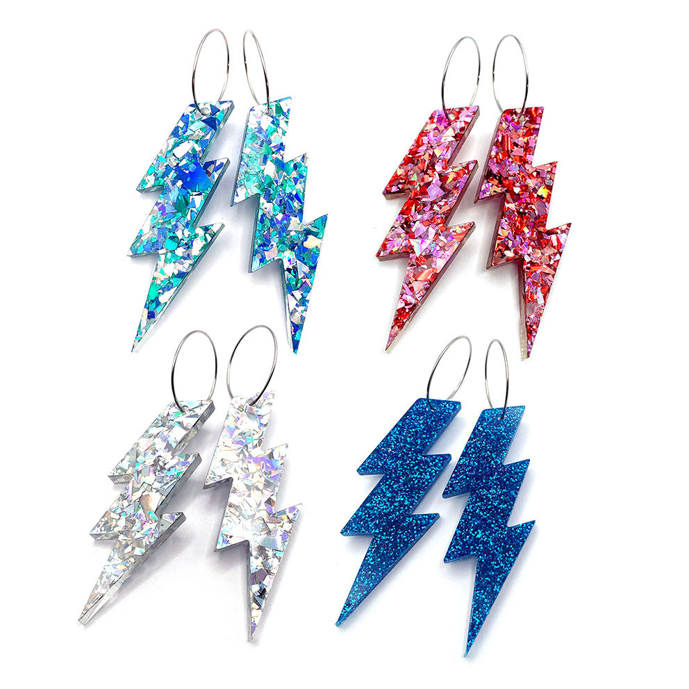 Laser cut from premium acrylic and assembled by hand. They have a stunning sparkle and are smooth to the touch. Perfect for day or evening. Lightweight and easy to wear.