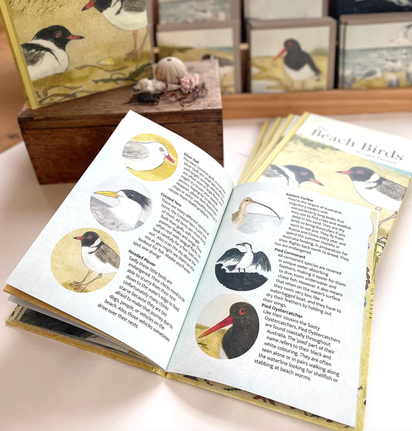 Birds included in this book - Silver Gull, Crested Tern, Hooded Plover, Eastern Curlew, Pied Cormorant, Pied Oystercatcher, Masked Lapwing, Red-necked Stint, Pacific Gull, White-bellied Sea Eagle, Bar-tailed Godwit and Beach Stone-curlew.