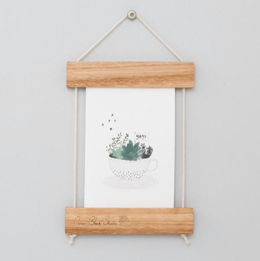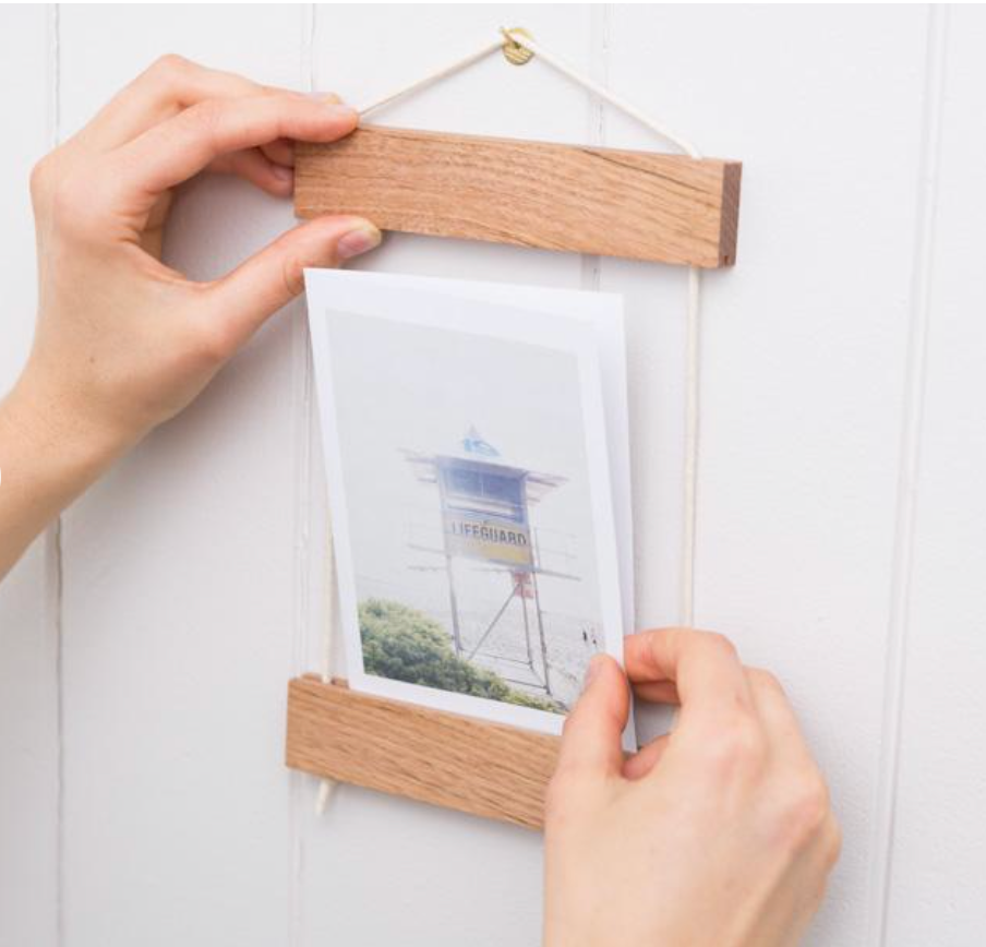 It’s fast and simple use - just slide the top timber piece up and down the cotton cord and place your greeting card into the slot.