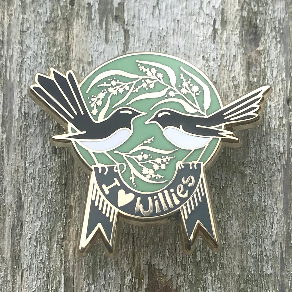 Declare your admiration for Willie Wagtails by shouting, loud and clear, in highly populated areas, "I LOVE WILLIES!" Or alternatively, you can subtly wear this pin.