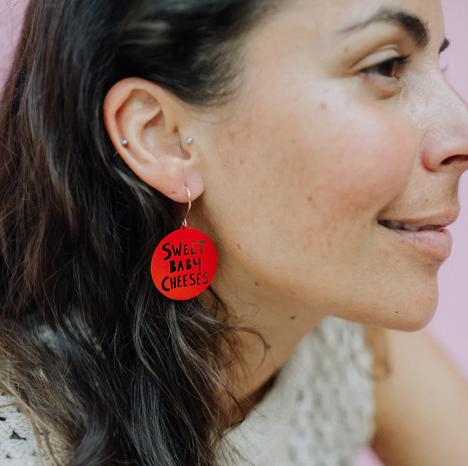 DENZ "Mini Sweet Baby Cheeses earrings in Red" Christmas dangles statement earrings