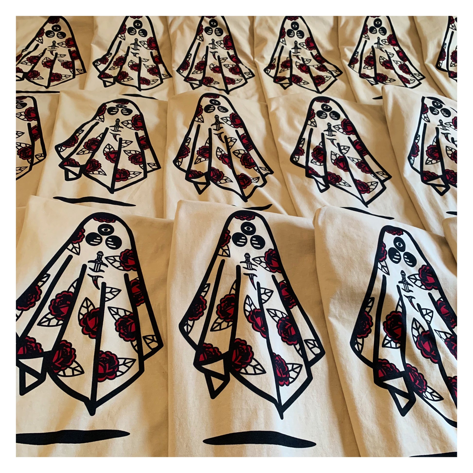 Please note: each T-shirt is hand printed by Sean, so there may be small inconsistencies in print and colour as he is only human.
