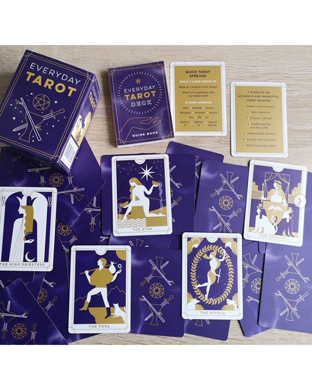 - An 88-page mini book, with card meanings and sample spreads.