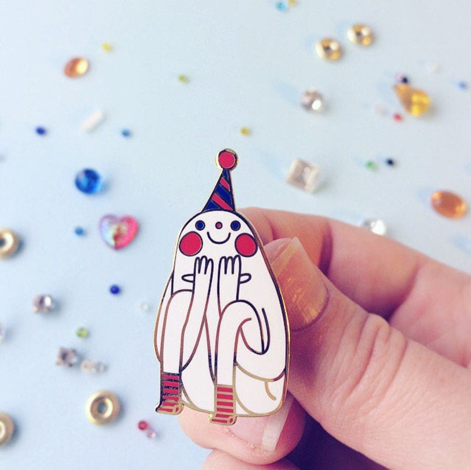 Nothing would make this outrageously sweet Party Pin Pal happier than to adorn your lapel/backpack and accompany you on social outings.
