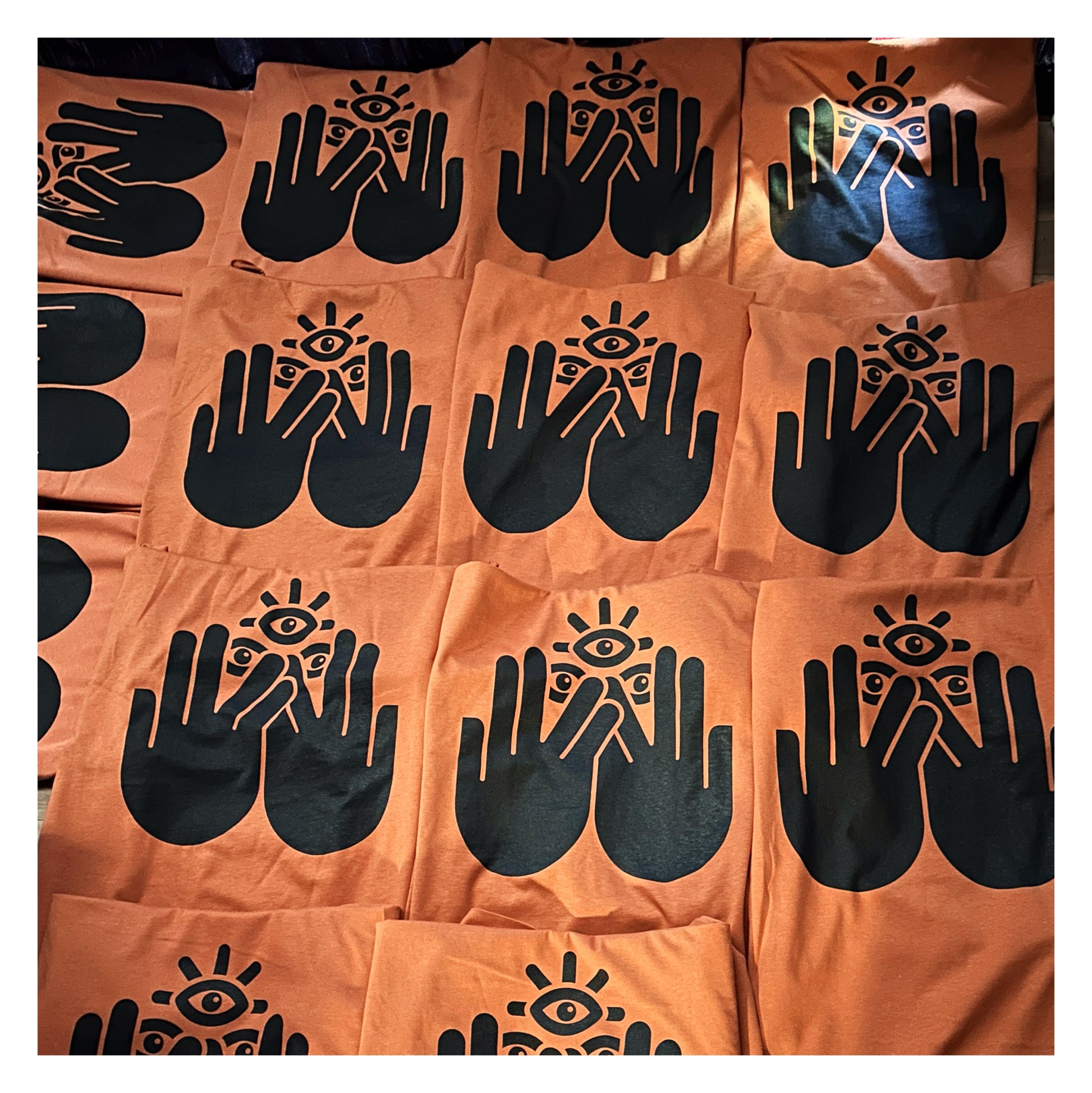 Please note: each T-Shirt is hand printed by Sean, so there may be small inconsistencies in print and colour as he is only human.