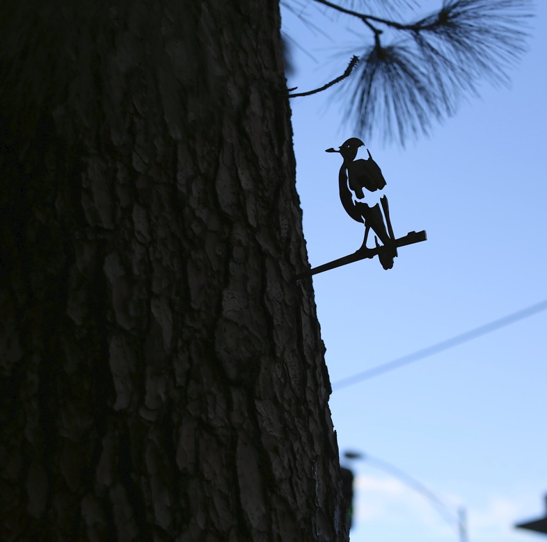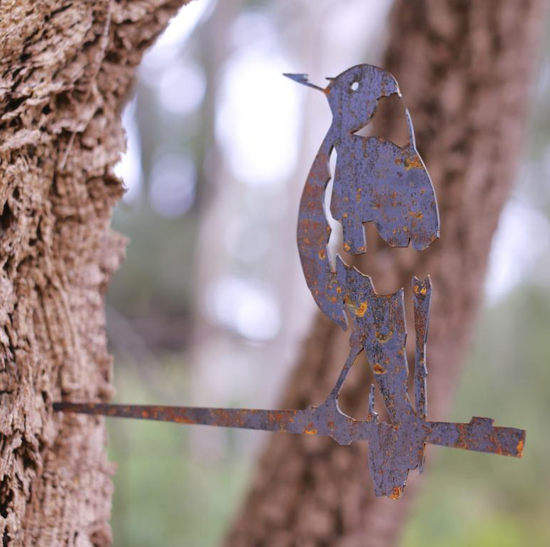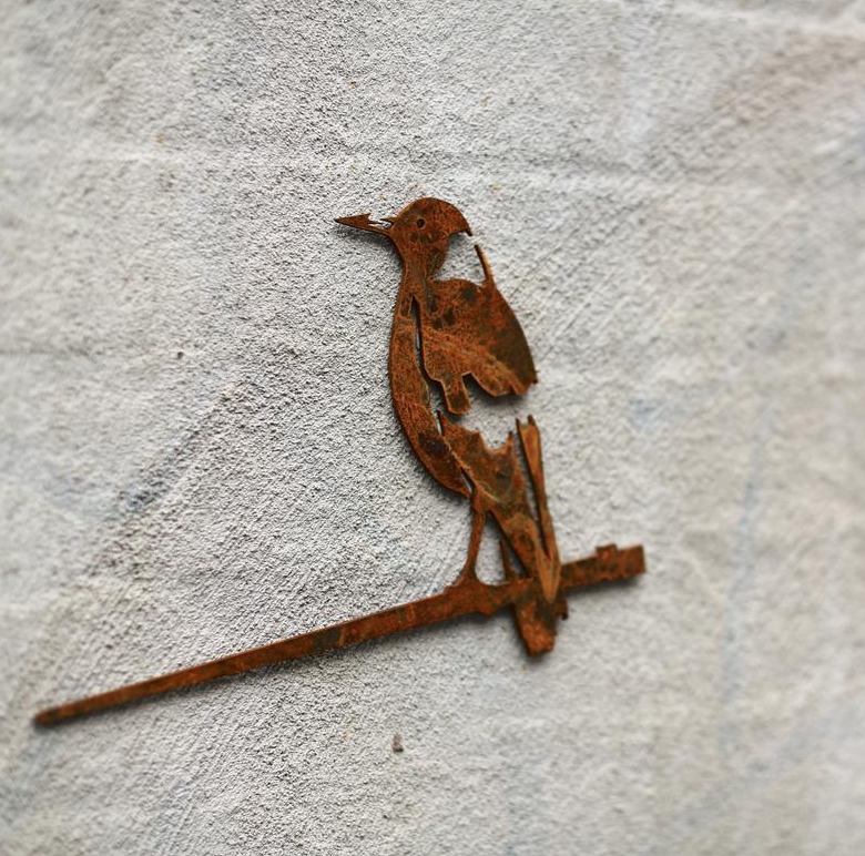Metalbirds are made from Corten® which is designed to rust. This gives them long term protection against the elements, and a beautiful patina that shifts with the season. This means paint won’t stay on for long. If you want to add colour to them, then we recommend having them professionally powder coated. It's easily hammered into most wooden structures and will rust to a deep brown. The hammering of a steel ‘peg’ into a tree will not do any damage to it. It may cause the tree to lose some sap in the short term but will not do any medium or long term damage to it.