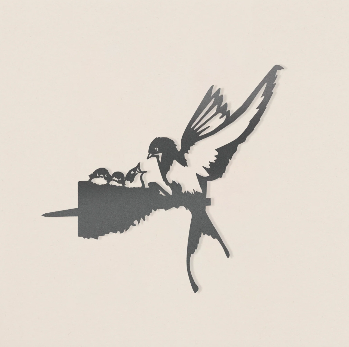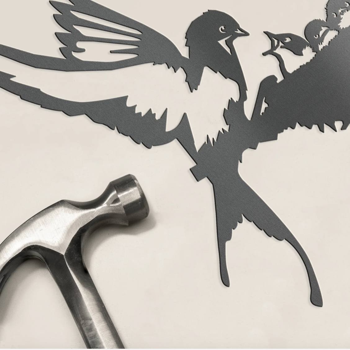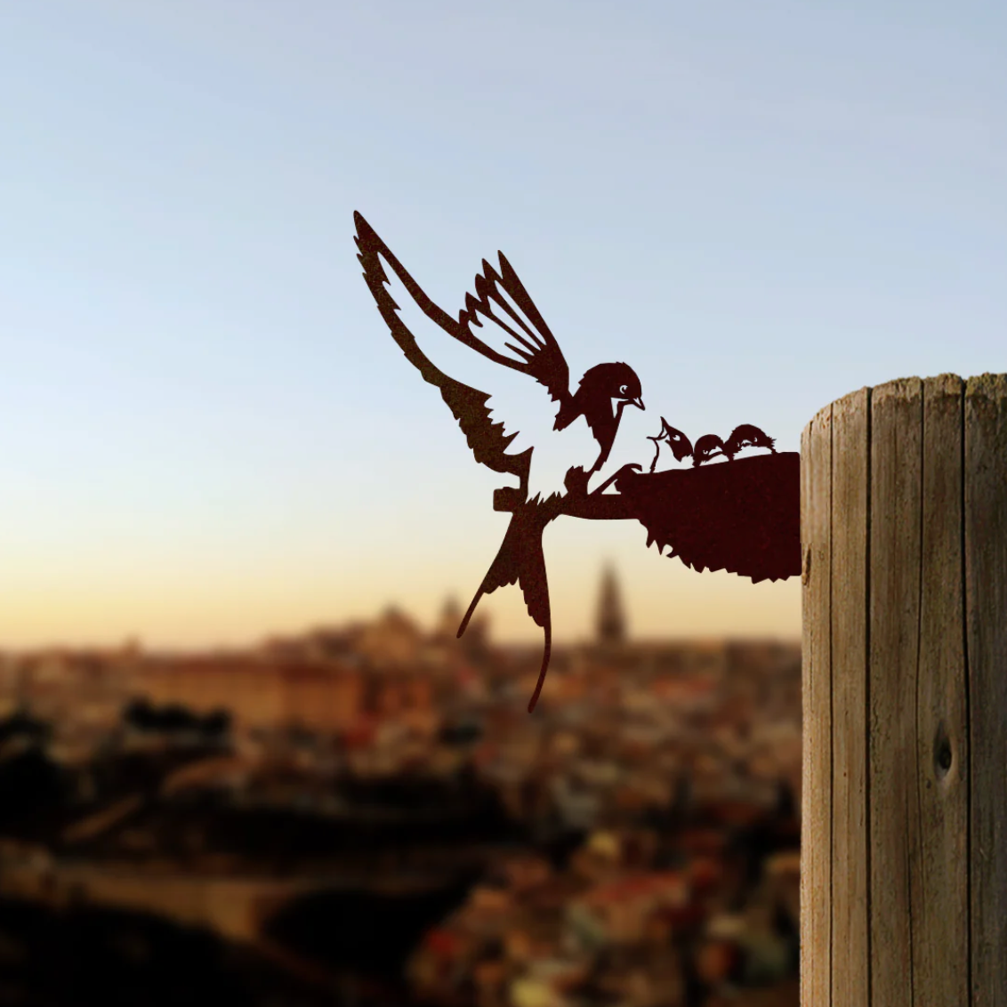 The Swallows Nest is a special release. A tender silhouette of a Swallow feeding her chicks, this limited edition Metalbird is crafted from Corten steel and is inspired by the women who raised us!