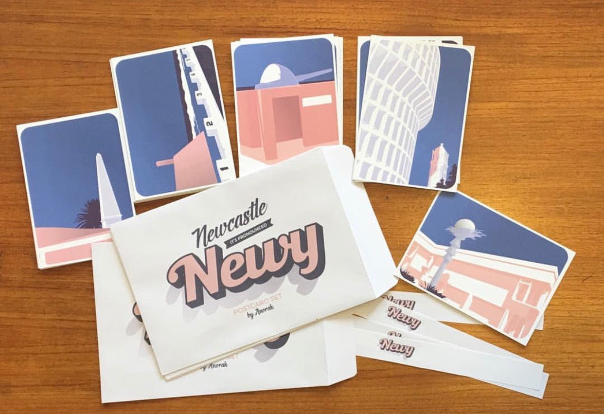 "Newcastle - it's pronounced Newy!"© set of 5 mini art prints/postcards by Anorak®