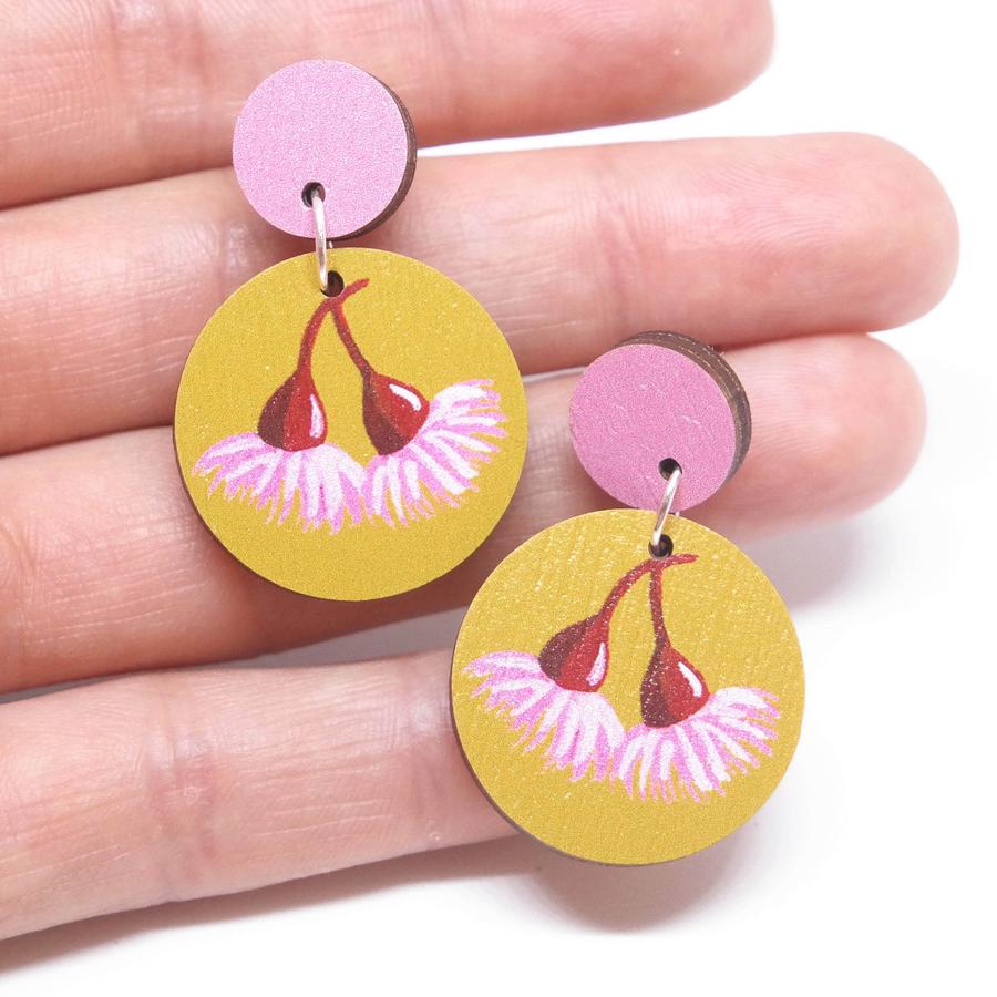 Add some colour to your wardrobe with these friendly light weight cuties! Jewellery charms are printed on 3mm thick ply wood and cut to shape and then constructed by Philippa - Pixie Nut & Co - in NSW Australia.