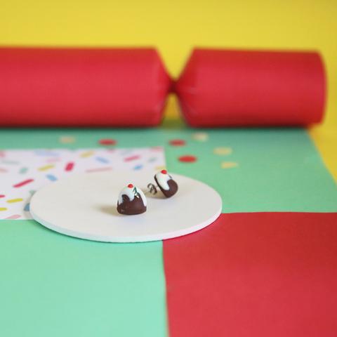 These realistic little plum puddings are handmade by the Melbourne artist behind the label Saturday Lollipop, Ellie McAlpine. Lightweight and easy to wear with incredible attention to detail. Each pudding is just over 1cm in size.
