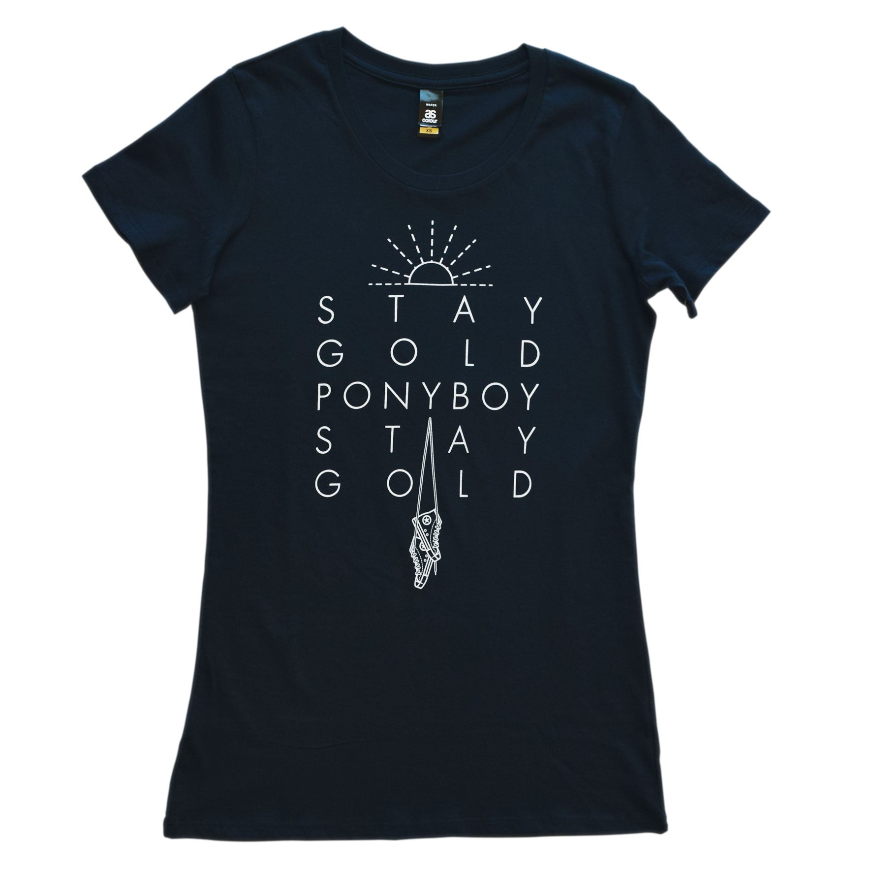 A quote from one of Sean's favourite novels - The Outsiders, by S.E.Hinton. Basically it means: continue to be innocent, and pure.